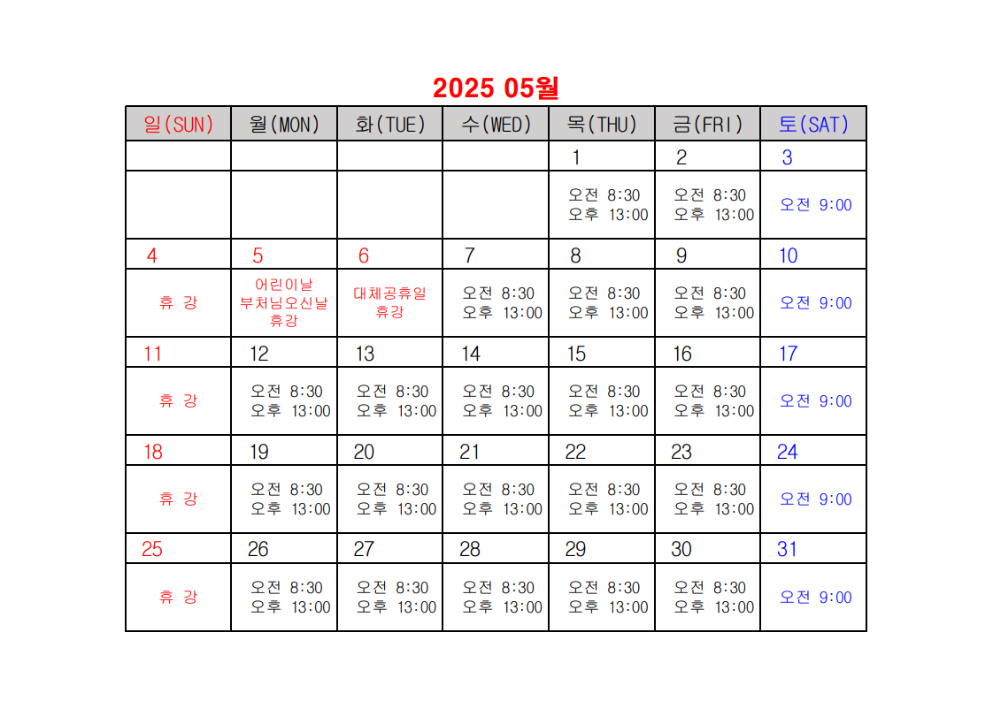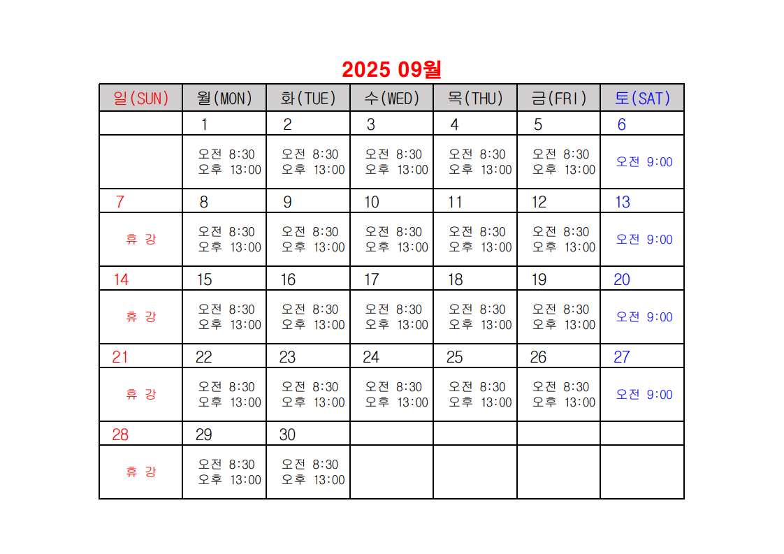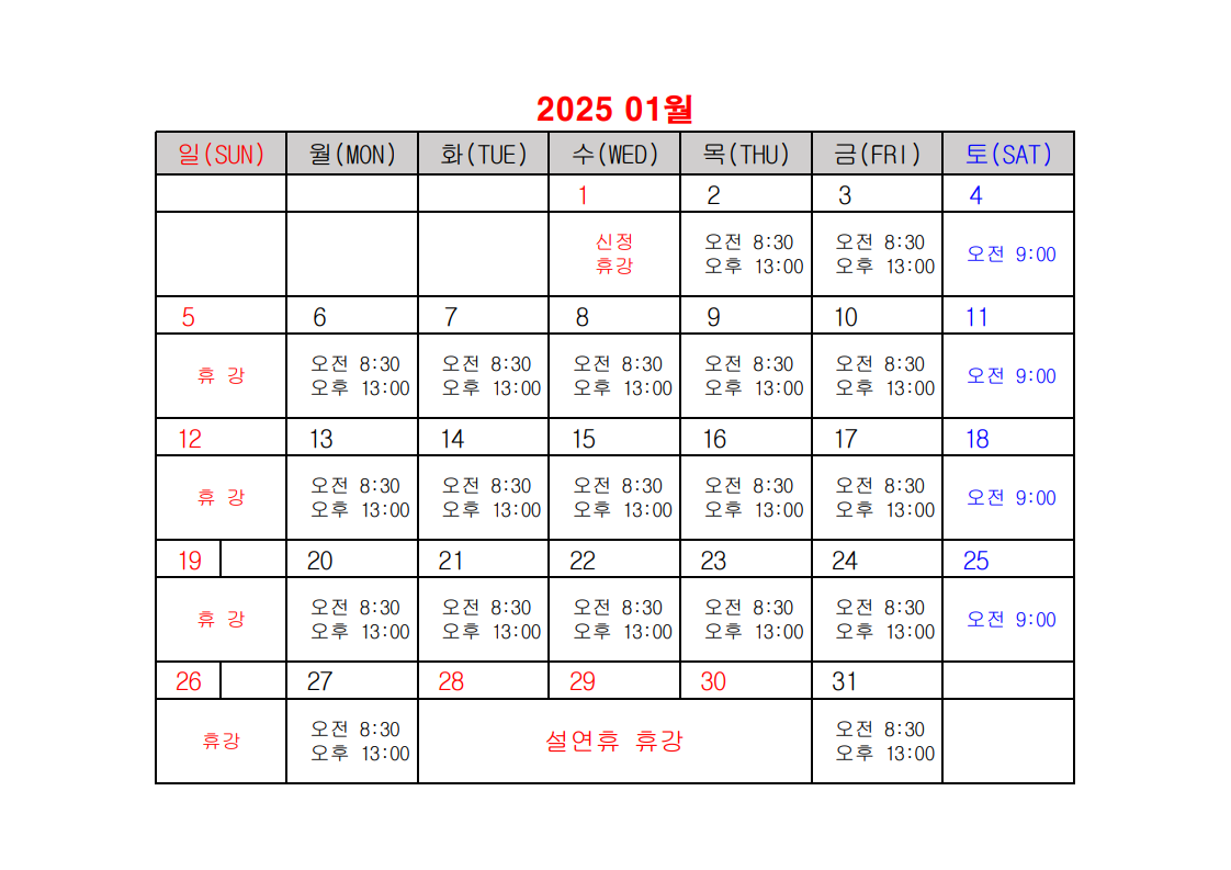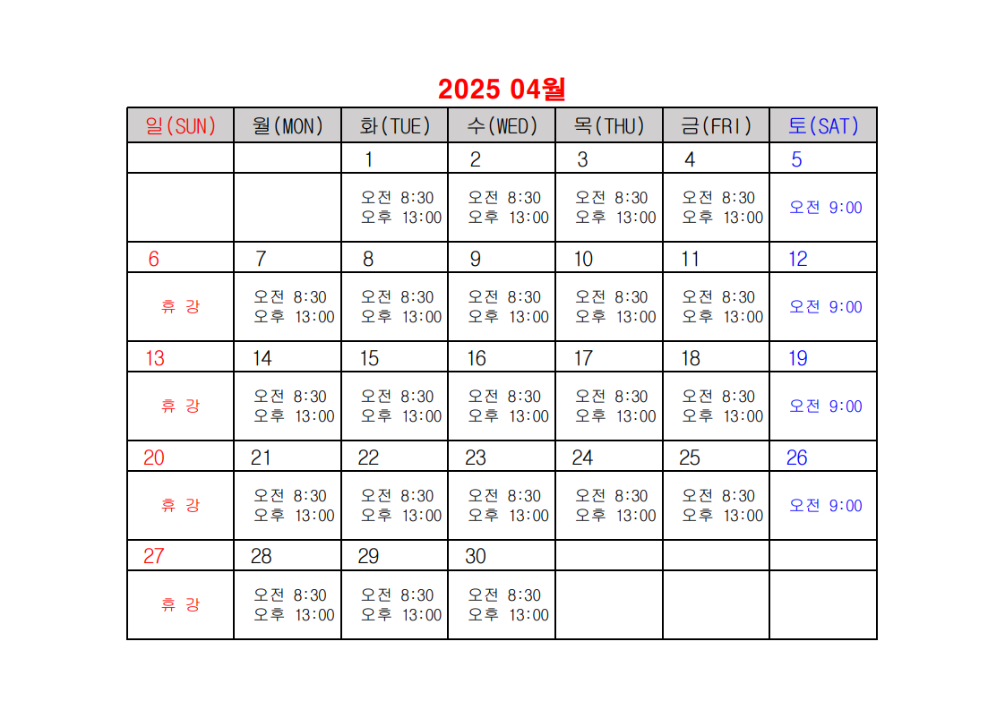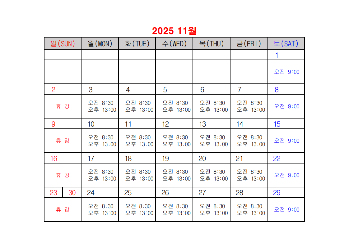 2025년 건설업 기초안전보건교육 일정표