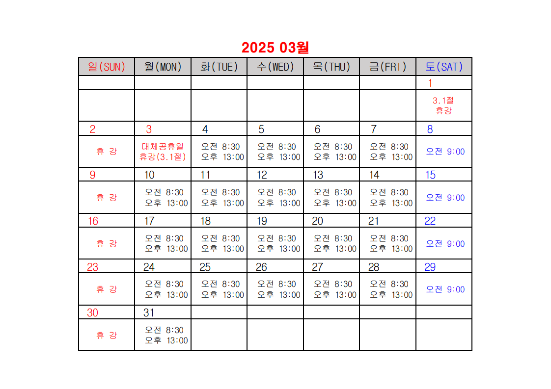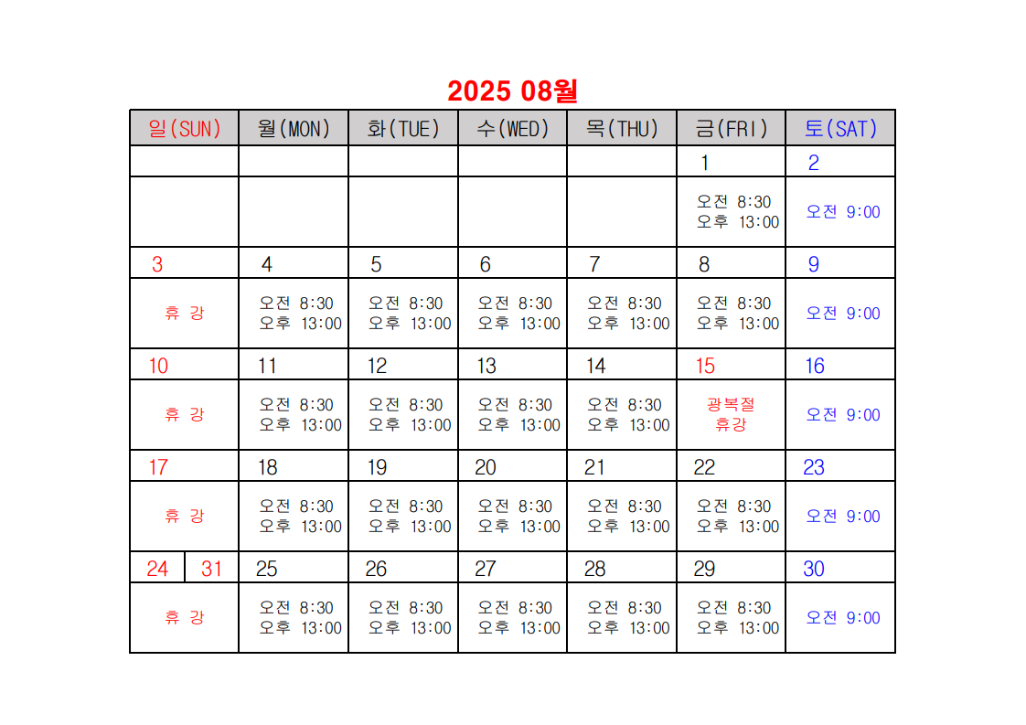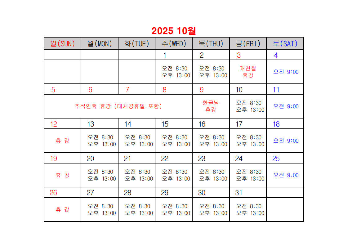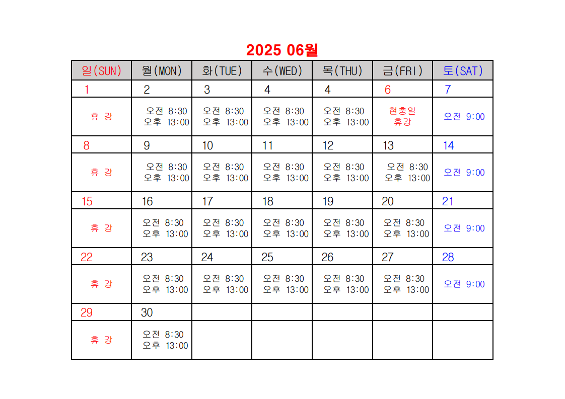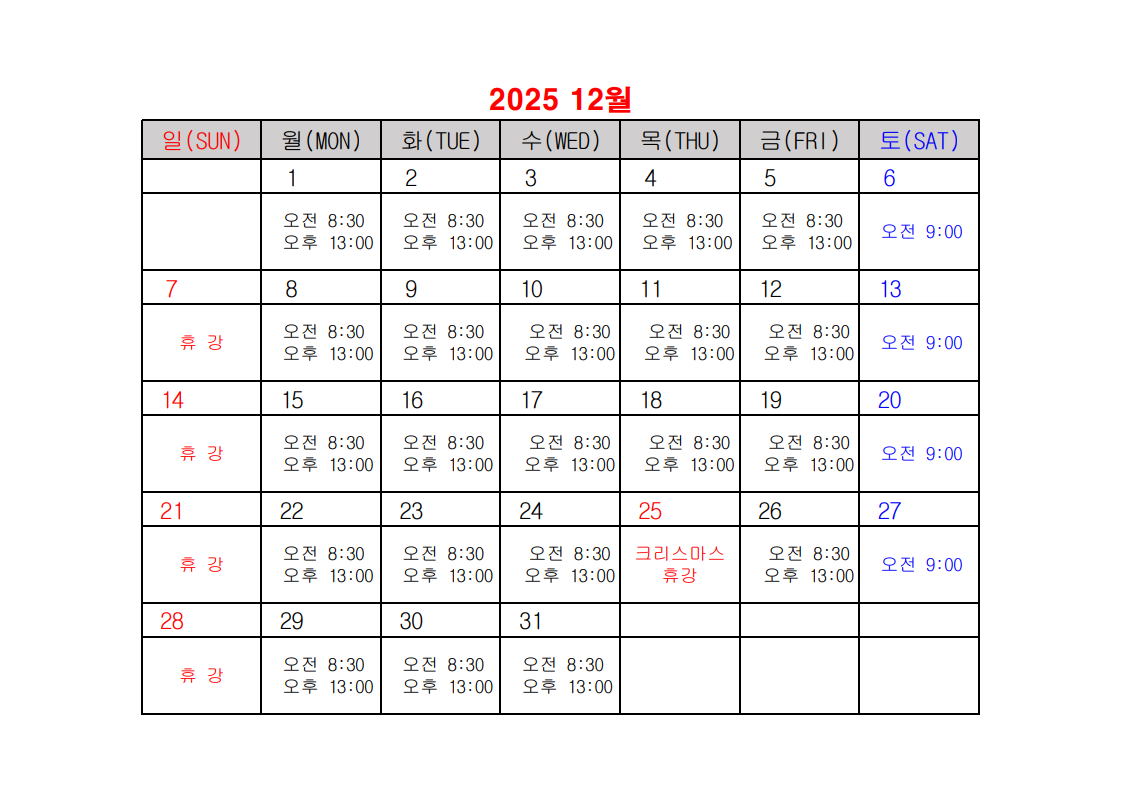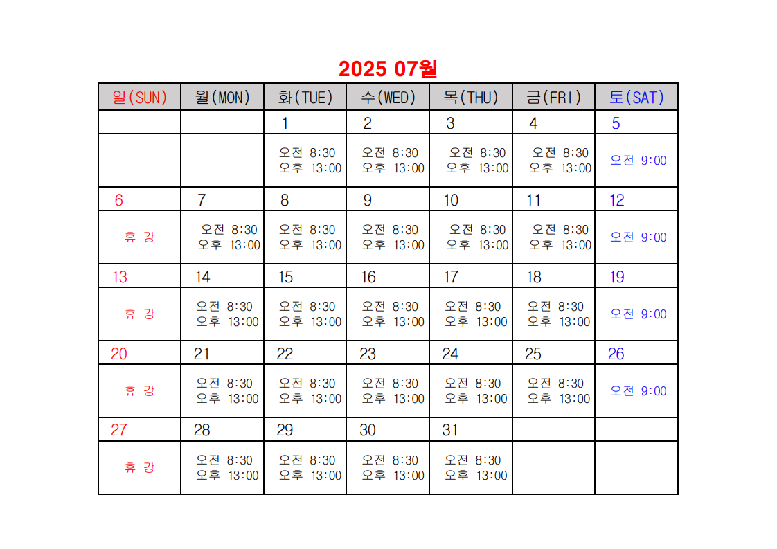 2025년 건설업 기초안전보건교육 일정표